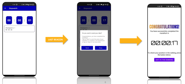 Android application designed to detect beacon signals from transmitters located along the marathon route. This ensures that athletes pass through all the necessary checkpoints.